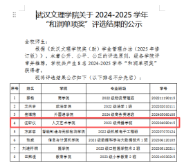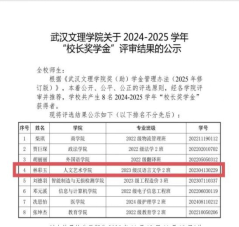近日,武汉文理学院2024-2025学年奖学金评选落下帷幕,人文艺术学院学子再传佳音:2023级汉语言文学2班林彩玉凭借扎实的专业素养与综合实力斩获“校长奖学金”,2023级传播学专业汪轩仪以卓越的学业表现与实践能力荣获“和润单项奖学金”。两位学子以热爱筑基、以笃行赋能,在青春赛道上交出亮眼答卷,也为学院育人成果再添一抹亮色。