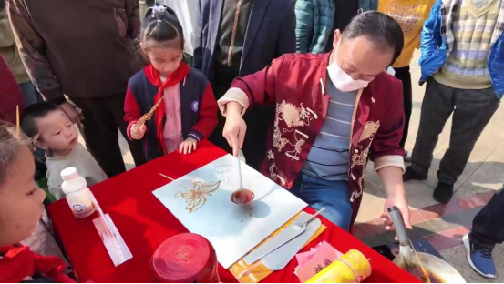 没有预设的脚本,学子们以小组为单位,跟着社区居民的节奏捕捉真实与感动。有人守在菜品展示区,听居民讲述家乡菜背后的乡愁故事,镜头里满是岁月沉淀的温情;有人聚焦活动表演区,孩子们手持红册、朗声诵读的专注模样,在镜头下格外动人;有人紧盯颁奖区,获奖者手握奖品时眉开眼笑的欣喜,被完整记录;还有人驻足美食手作区,师傅绘制糖画时手腕翻飞的灵巧姿态,在光影中静静流淌。课堂上学到的运镜、构图、氛围渲染等“影像叙事”技巧,此刻都化作捕捉美好的底气,让每一个生活片段都充满感染力。