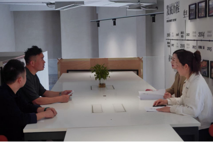 广东精鹰传媒科技集团股份有限公司副总裁、广东精鹰影视制作有限公司总经理谭志新、影视制作部总监胡俊杰对我院一行的到访表示热烈欢迎。首先胡俊杰总监细心接待了调研组老师,并全面介绍了公司的业务领域、发展变革历程及作品成果。随后的座谈会上,谭志新总经理详细分享了企业近期项目开展情况及典型经验,并具体介绍了企业团队分工、岗位设置以及人才需求等内容。他们高度认可我院的应用型人才培养模式,并表达了加强与学院合作、共同培养网络视听人才的意愿。毛蓉老师介绍了新闻传播系专业建设、学生发展等方面的情况,并希望通过校企合作,为学生提供更多贴近行业前沿的实习岗位和就业机会。