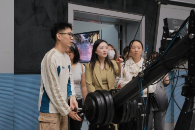 随后,调研组参访了位于佛山市新闻传媒中心的豪麦纪录片工作室,实地考察其专业制作环境,并与吴亦飞老师围绕纪录片选题策划、拍摄技法与叙事创新等议题展开对话。双方从各自实践出发,分享了在内容价值挖掘与表达形式探索方面的经验,进一步凝聚了行业与高校在纪实类专题片制作人才培养上的共识。