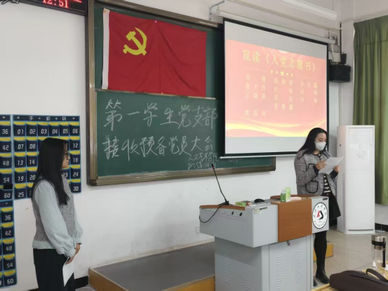 随后,刘格等十一名发展对象依次大会在雄壮的国歌声中拉开帷幕。全体与会党员肃立齐唱,歌声中凝上台,郑重宣读《入党志愿书》。他们用真挚的语言,讲述了对党的深刻认识、纯正的入党动机以及个人成长历程。字句之间,是思想的淬炼,是理想的闪光,更是向党组织靠拢的坚定步伐。